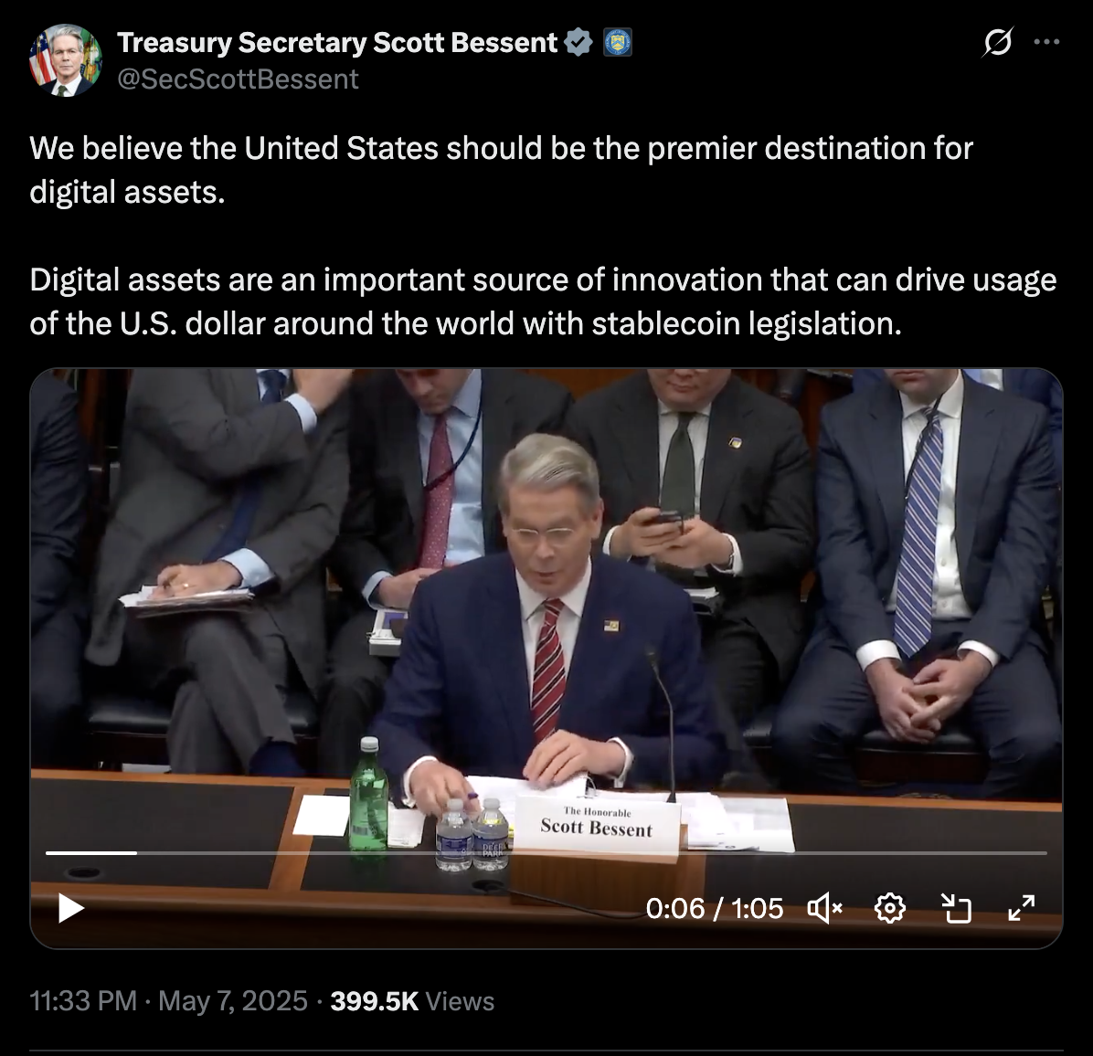 5 月 7 日:财长贝森特出席众院听证会,表态支持法案
